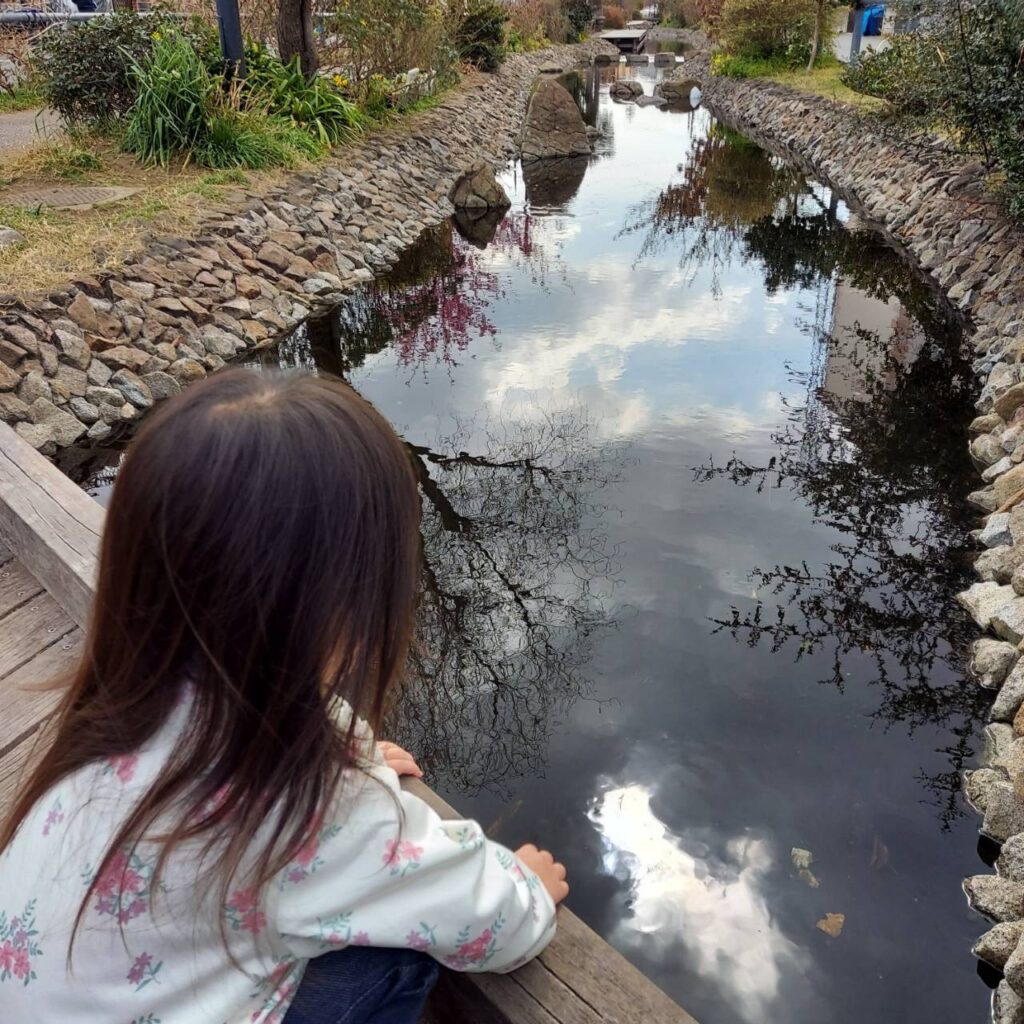 川に水がありました。鴨さんは、帰って来たかなぁ。