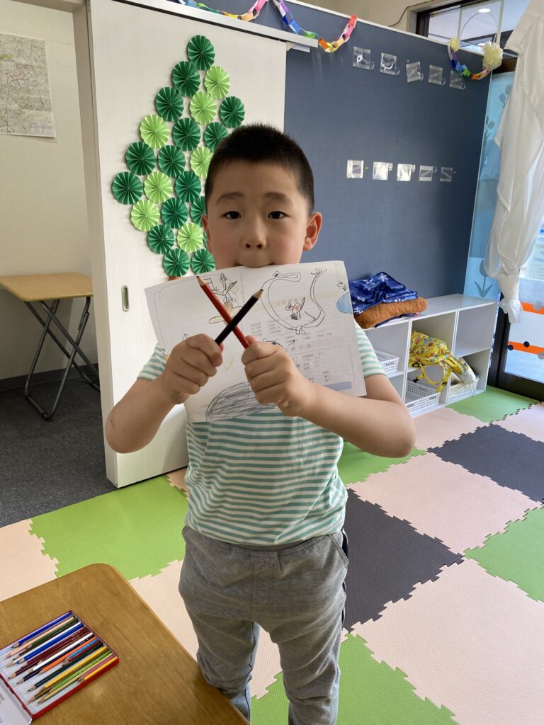 5月16日の様子 散歩しながら、サンドラックに行きました。 oyatu おやつの買い出しと店内を歩きました。 テントの隅で何をしているのですか。 学校の宿題に取り組んでいます。 作品名 宇宙と恐竜 いい笑顔 5月15日 玄関前の水溜りが解消されました。5月16日