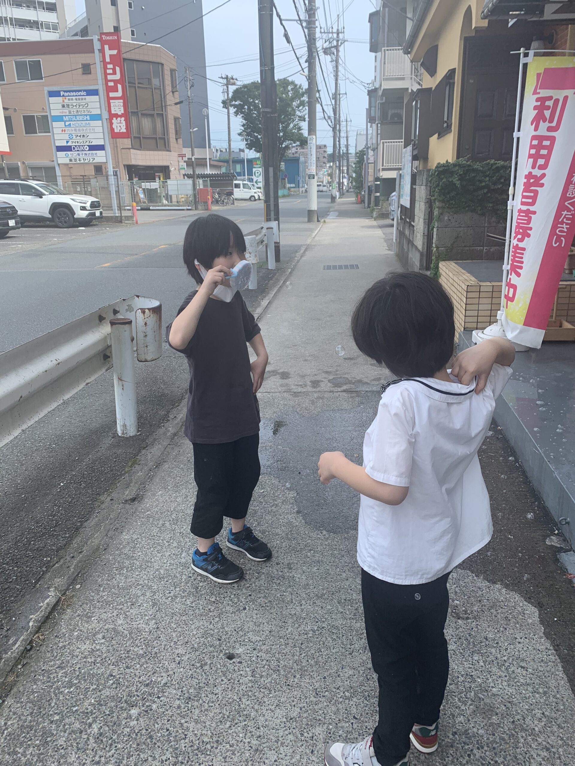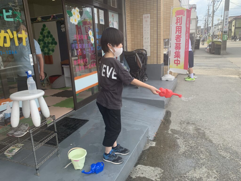 外が暑いので、打ち水をしました。涼しくなったね。