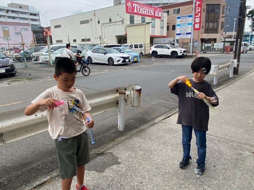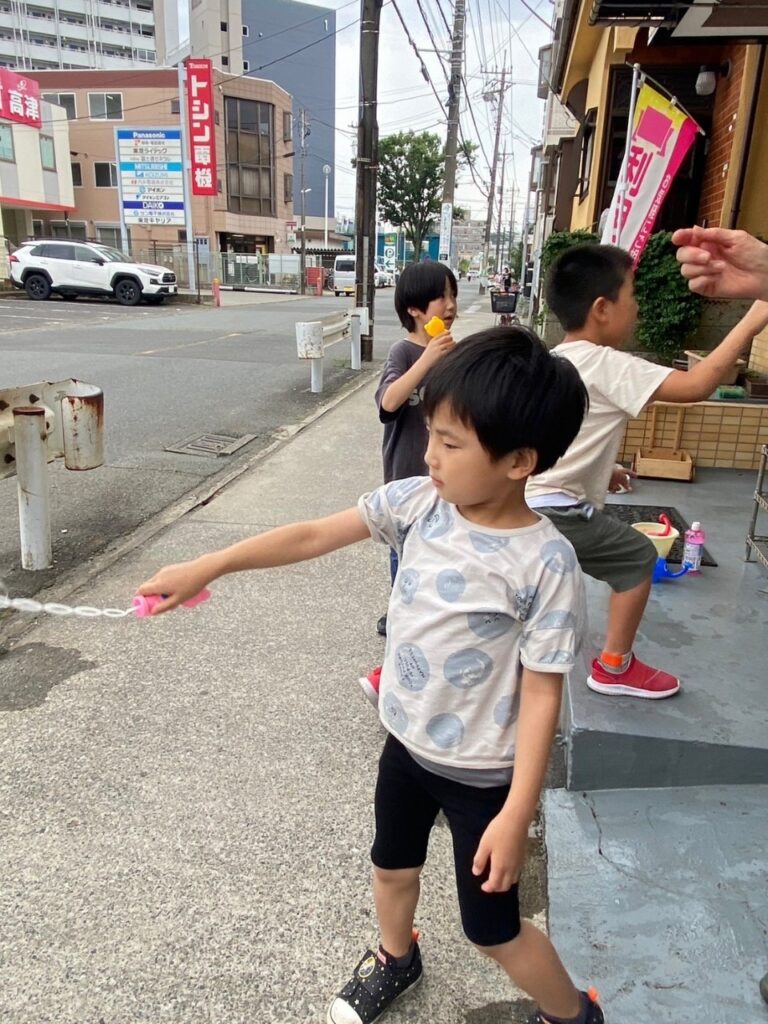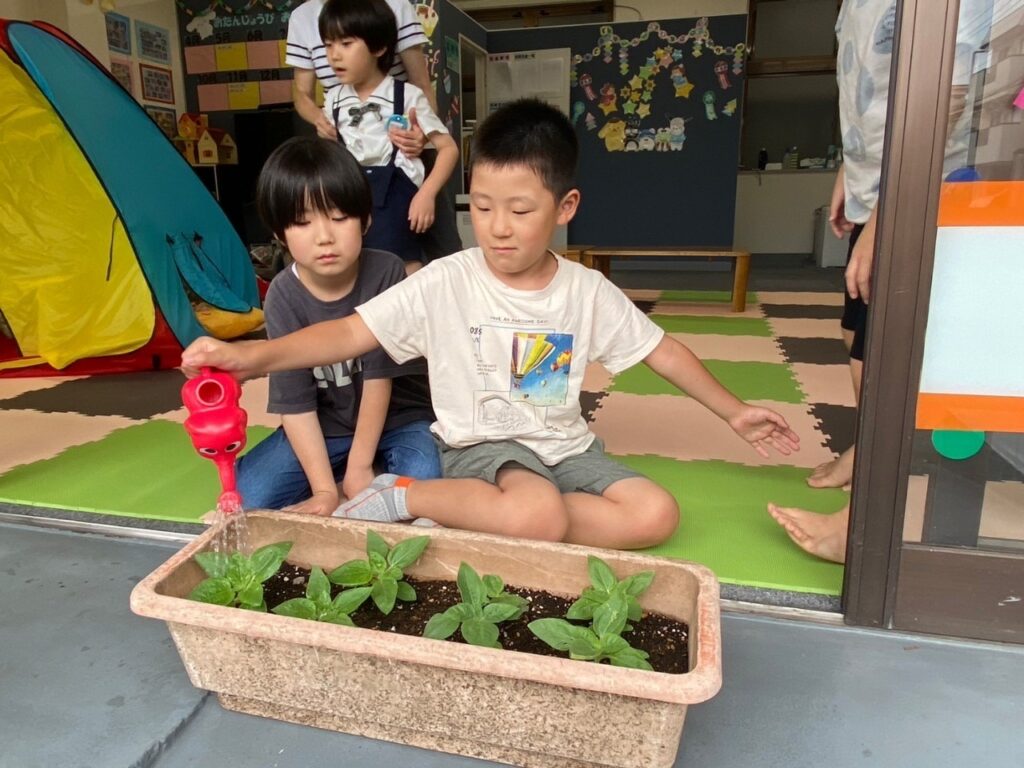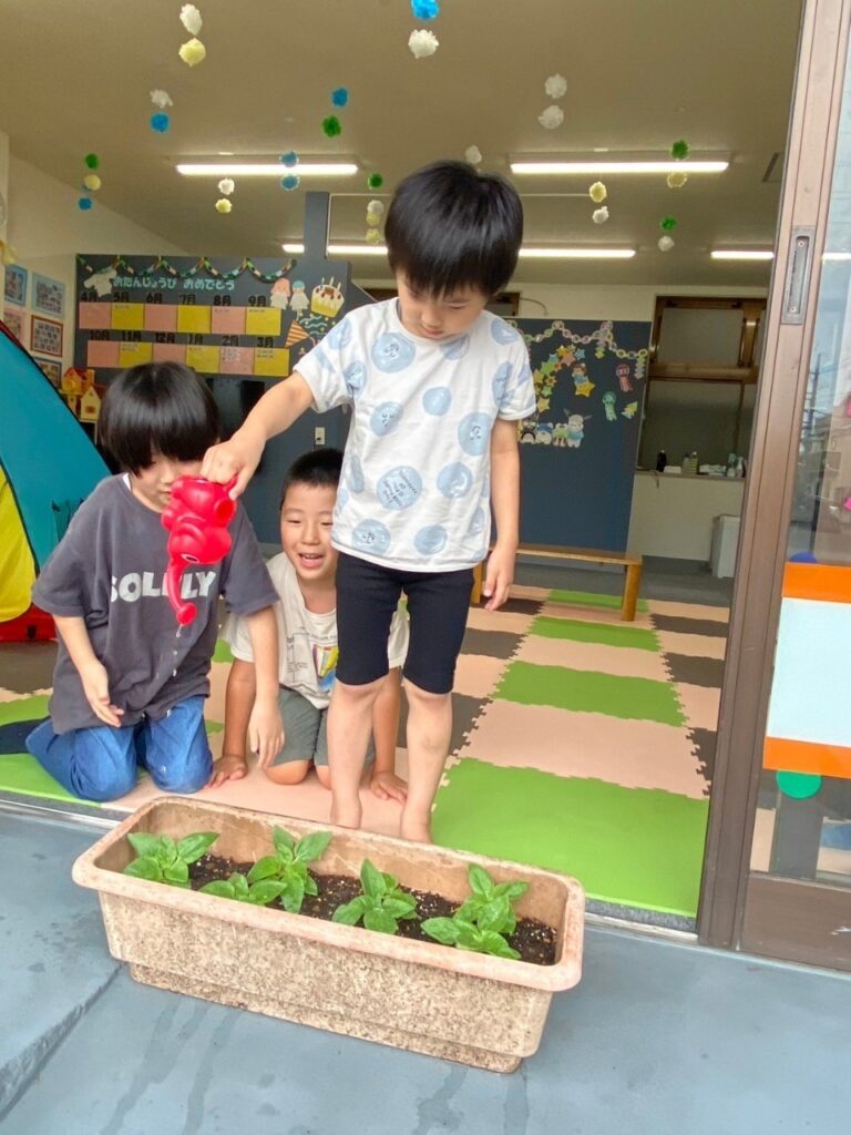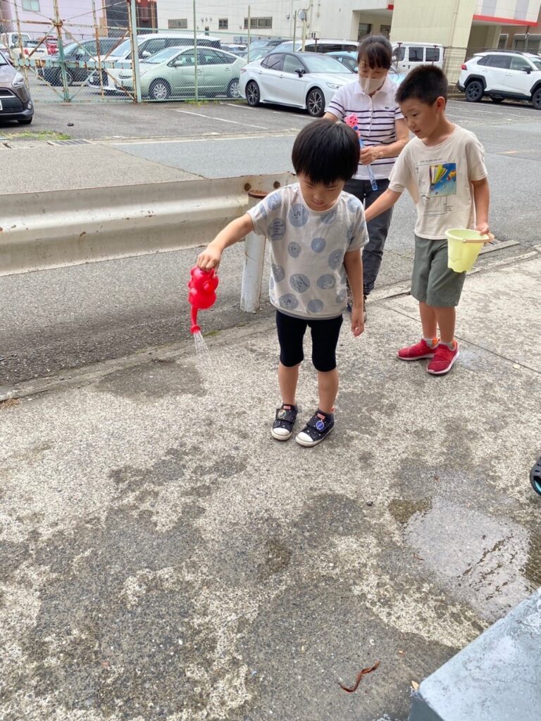 6月30日の様子 元気に育ってきましたね。 大好きなシャボン玉だね。 シャボン玉は、風にのって飛んで行ってしまいました。 ふたりで打ち水です。涼しくなったね。 6月29日の様子 みんなの基地閉鎖のお知らせ