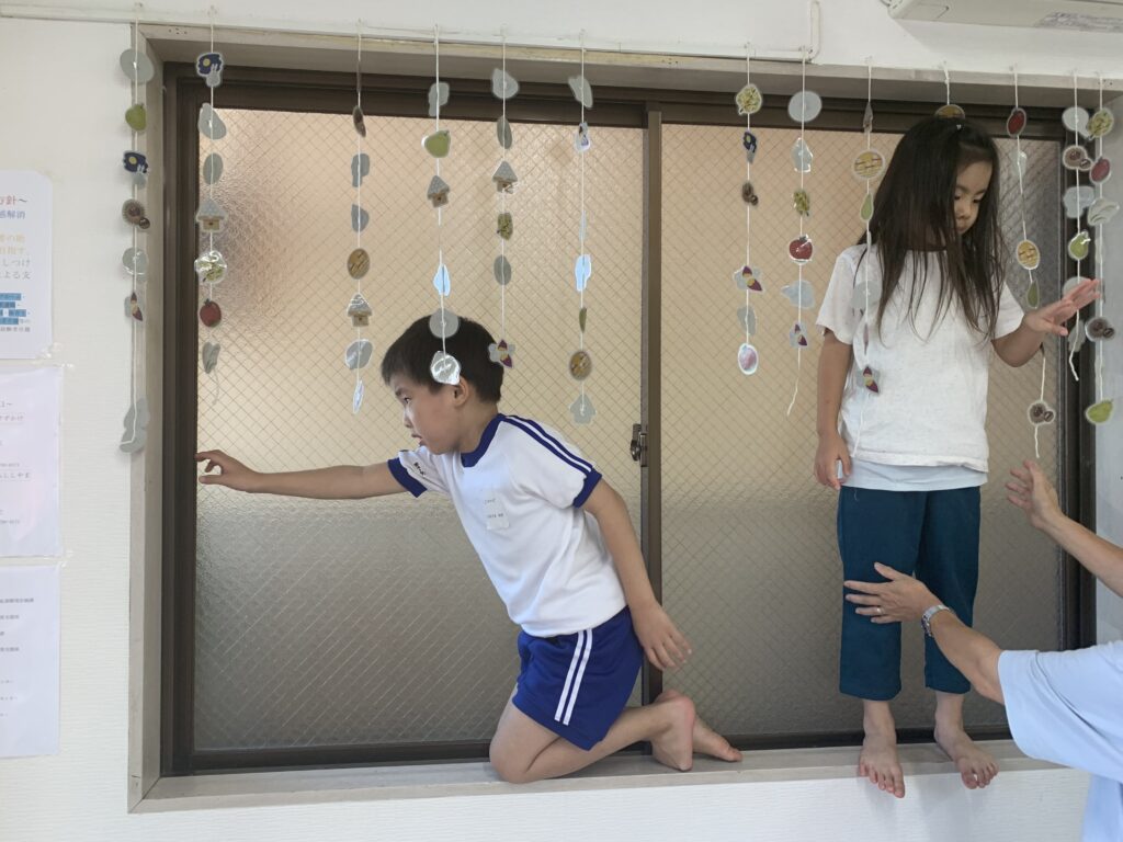 最近、高い所に登ることが流行りになりました。本当は、木登りをさせたいですね。