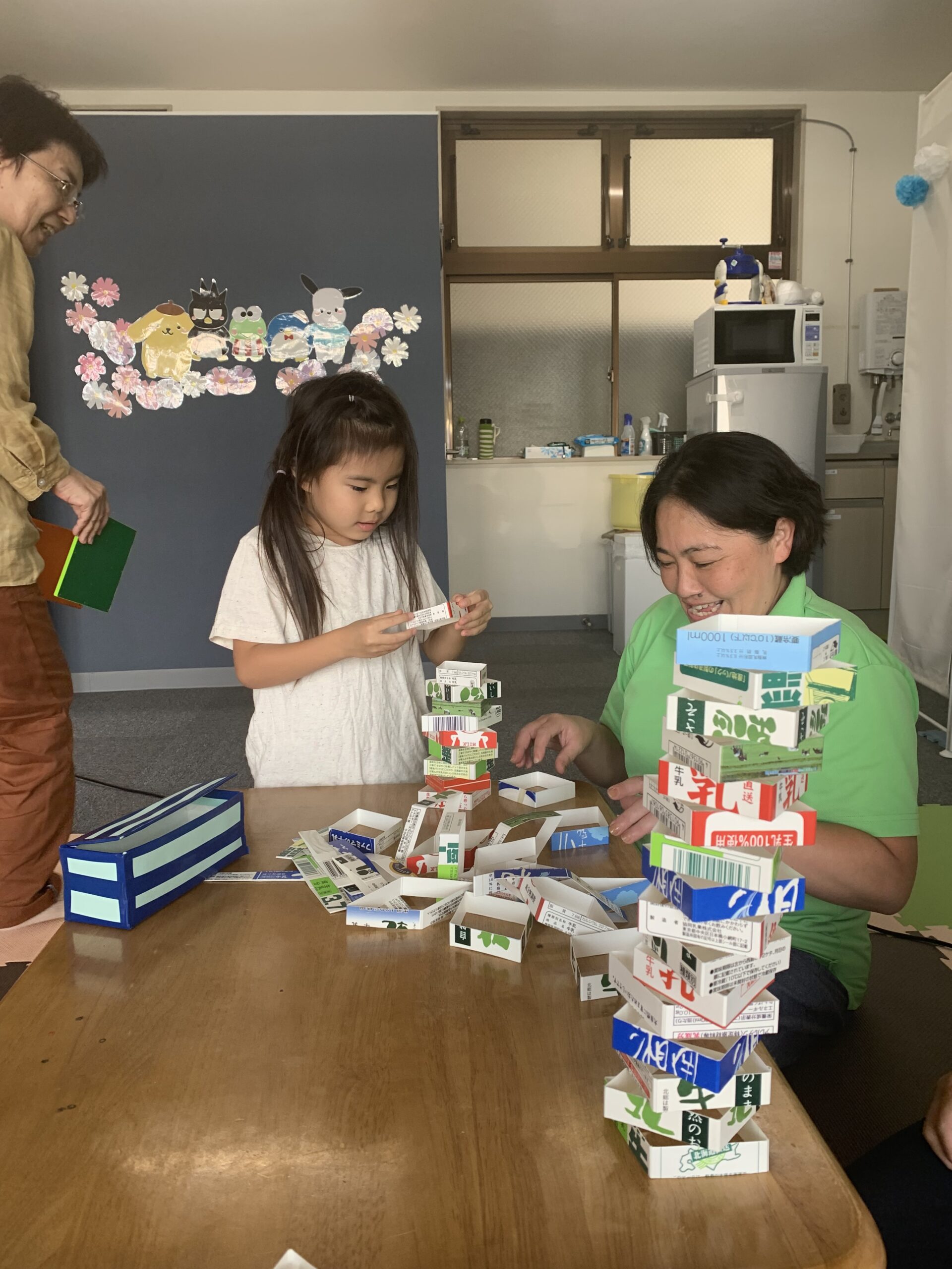 たらいの中にボールを入れることに挑戦しました。二人とも、頑張ってたらいの中に入れることが出来ました。よく、頑張りました。