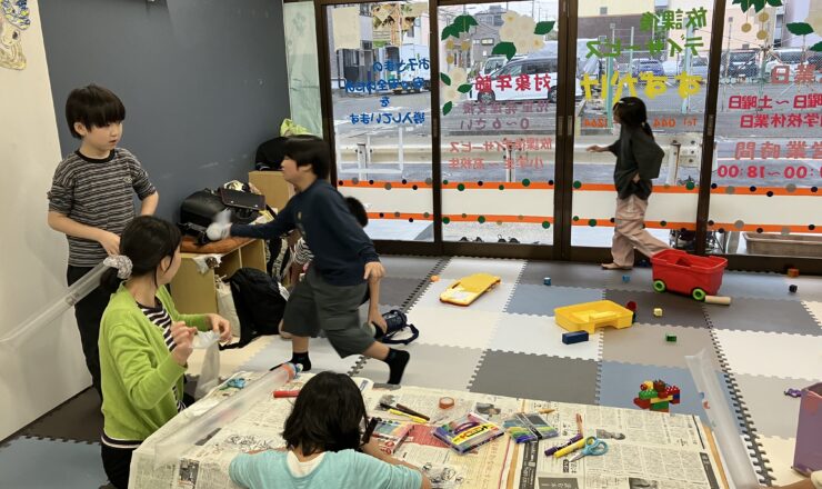 みんなで、マルエツで段ボールを貰いに行き、作製をしました。 戦車を作成中。 ロボットを作りましたが、前が見えないそうです。 上...