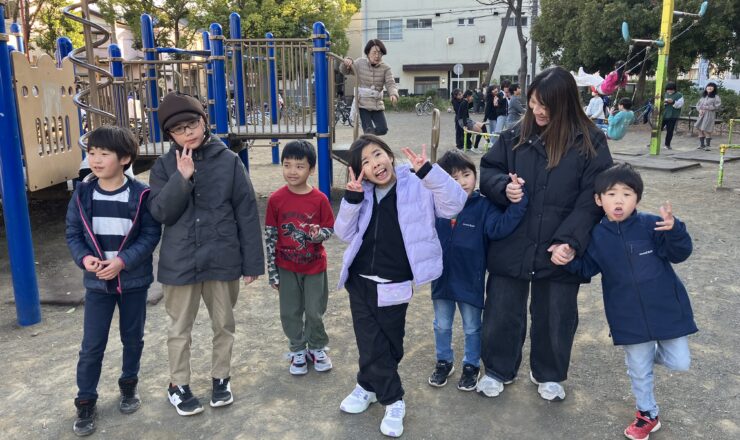 シャン玉を楽しみました。 お兄さんが振り方を教えてくれました。 満足な顔です。