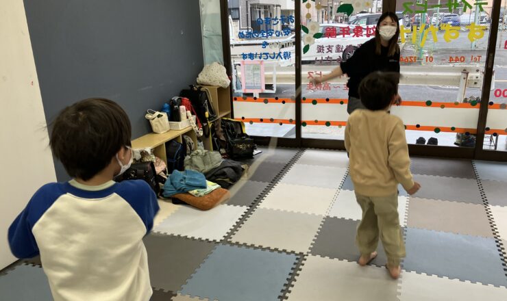 自分でやりたい事で、過ごしました。 工作作りが好きなふたりです。 お兄さんと遊んでいました。 ドアの覗き窓から外の様子を伺って...