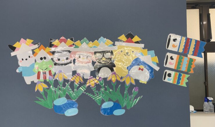 鯉のぼり作りをしています。上手に貼ってね。 兜と鯉のぼり