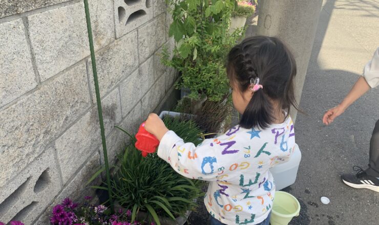 お向かいのお宅の花壇のお手伝いをすることになりました。 花に水ををあげてね。 水がなくなるとバケツまで、水を入れに行きます。 ...