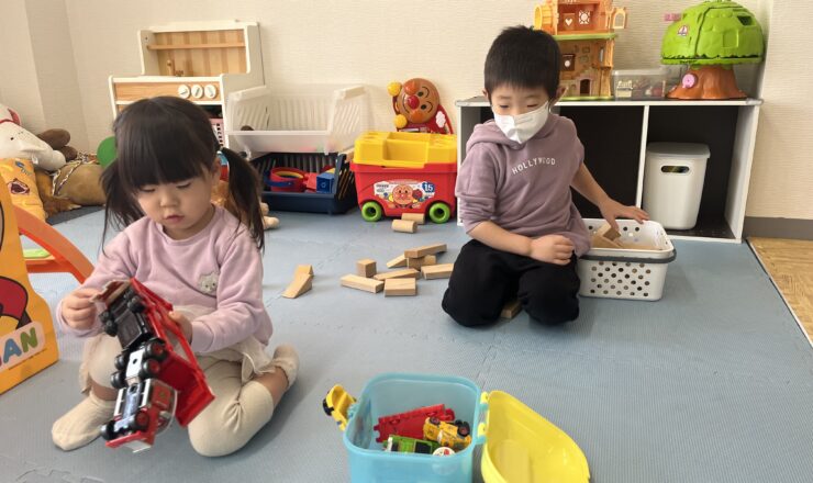 約束事として、色々なおもちゃを出さないので片づけてから次の遊びする。何かをする前には、片づける習慣にしています。