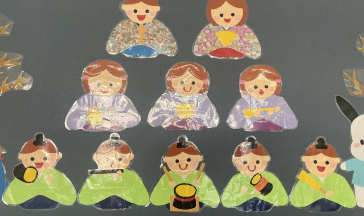 飾りをひな祭りに模様替えをしました。ようやく、鬼はいなくなりました。 つるし雛も事務所前に飾りました。