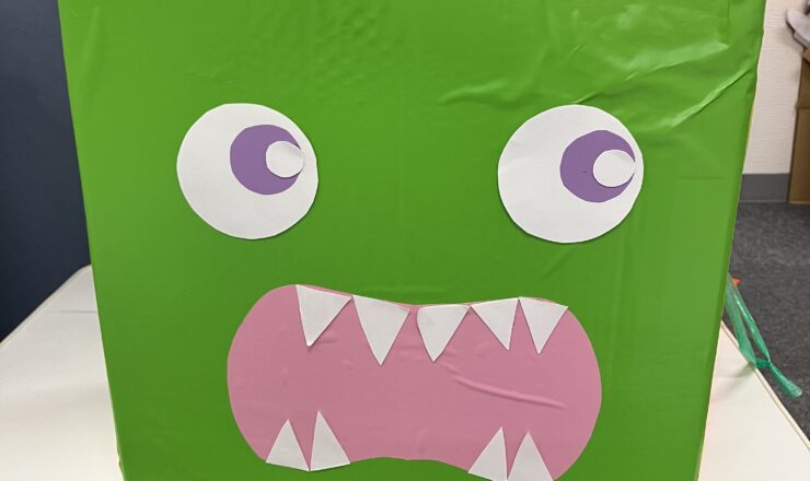 箱からお菓子をとります。ハロウィンお菓子は、なんですか。 おやつの後は、玉入れ開始。 かごが逃げていますから、かごに玉を入れて...